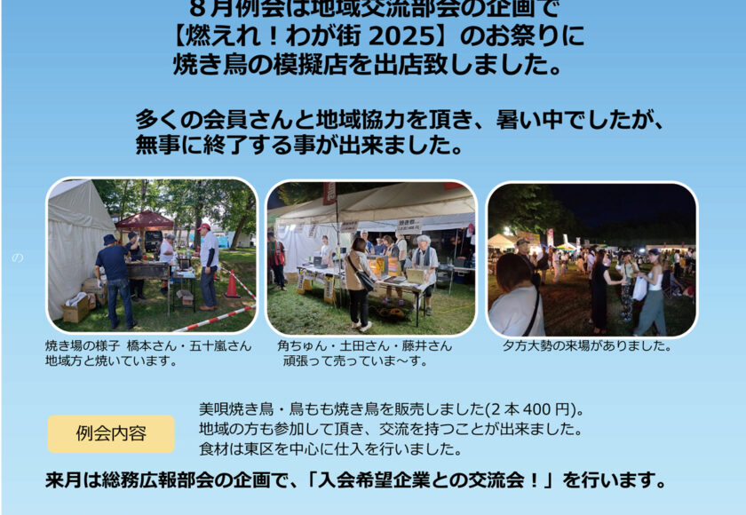 8月例会のご報告『夏だ!祭りだ!燃えれウイク!』を開催しました。