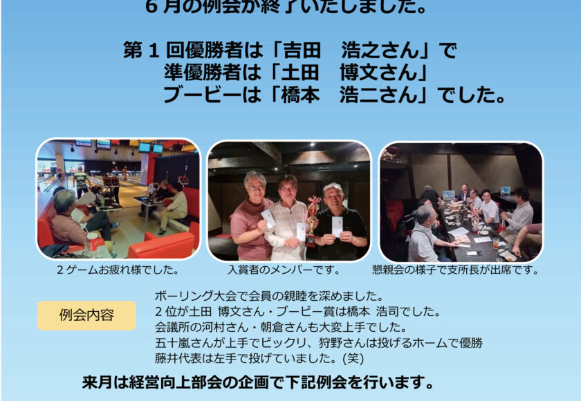 6月例会のご報告『ウイク杯大ボーリング大会』を開催しました。